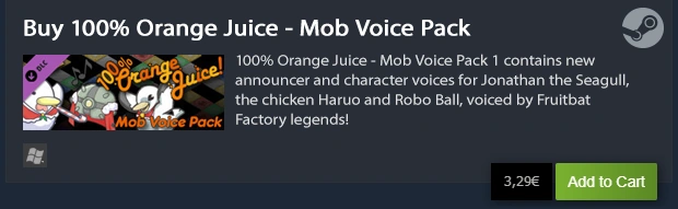 We're happy to announce that by popular demand, voices have finally been made available for Robo Ball, Haruo and Jonathan in 100% Orange Juice - Mob Voice Pack 1! See the new character trailer below! Jonathan the Seagull voice: Kyle 100% Orange Juice - version 2.0 changes