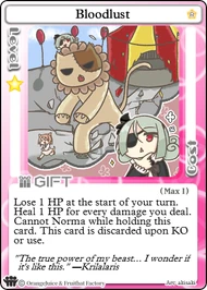 Bloodlust is a collectible Gift card that can be acquired from the Community Pack 2.