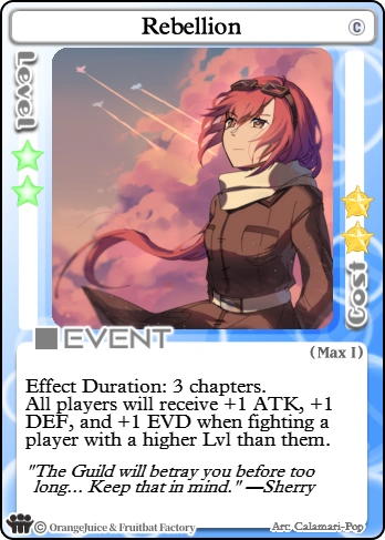 Rebellion is a collectible Event card that can be acquired from the Community Pack 4.