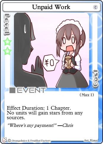 Unpaid Work is a collectible Event card that can be acquired from the Pudding Pack.